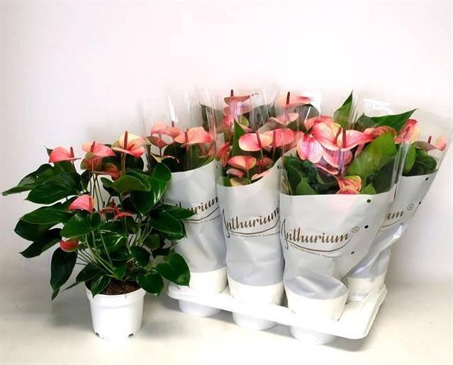 Las flores cerosas aparecen intermitentemente durante todo el año en esta bonita planta de interior. Los anthuriums son fáciles de cuidar e incluso cuando no están en flor, las hojas de color verde brillante todavía se ven geniales. Esta planta es bastante fácil de cuidar, y durará mucho mucho más que un ramo de flores.