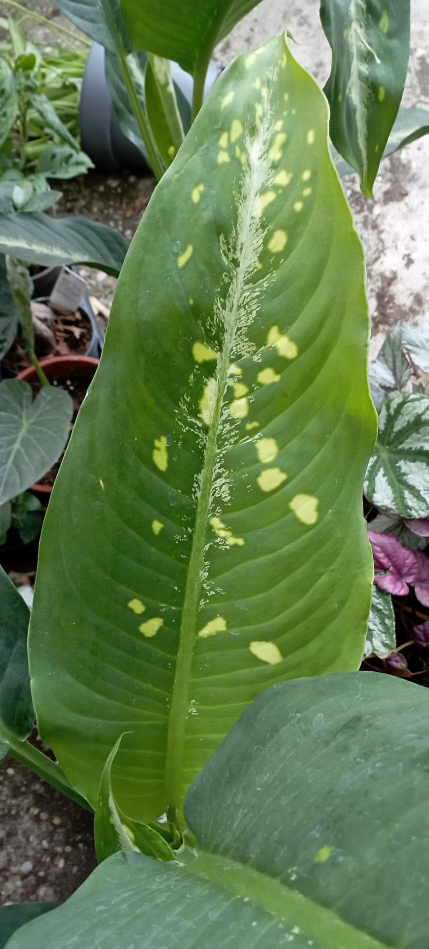La **Dieffenbachia Galaxy** es de esas plantas que parecen pintadas a mano. Sus hojas grandes y verdes están salpicadas de manchas en tonos claros, como si alguien hubiera querido imitar una galaxia en miniatura. Es una planta llamativa, resistente y con un aire exótico que eleva cualquier rincón de la casa.