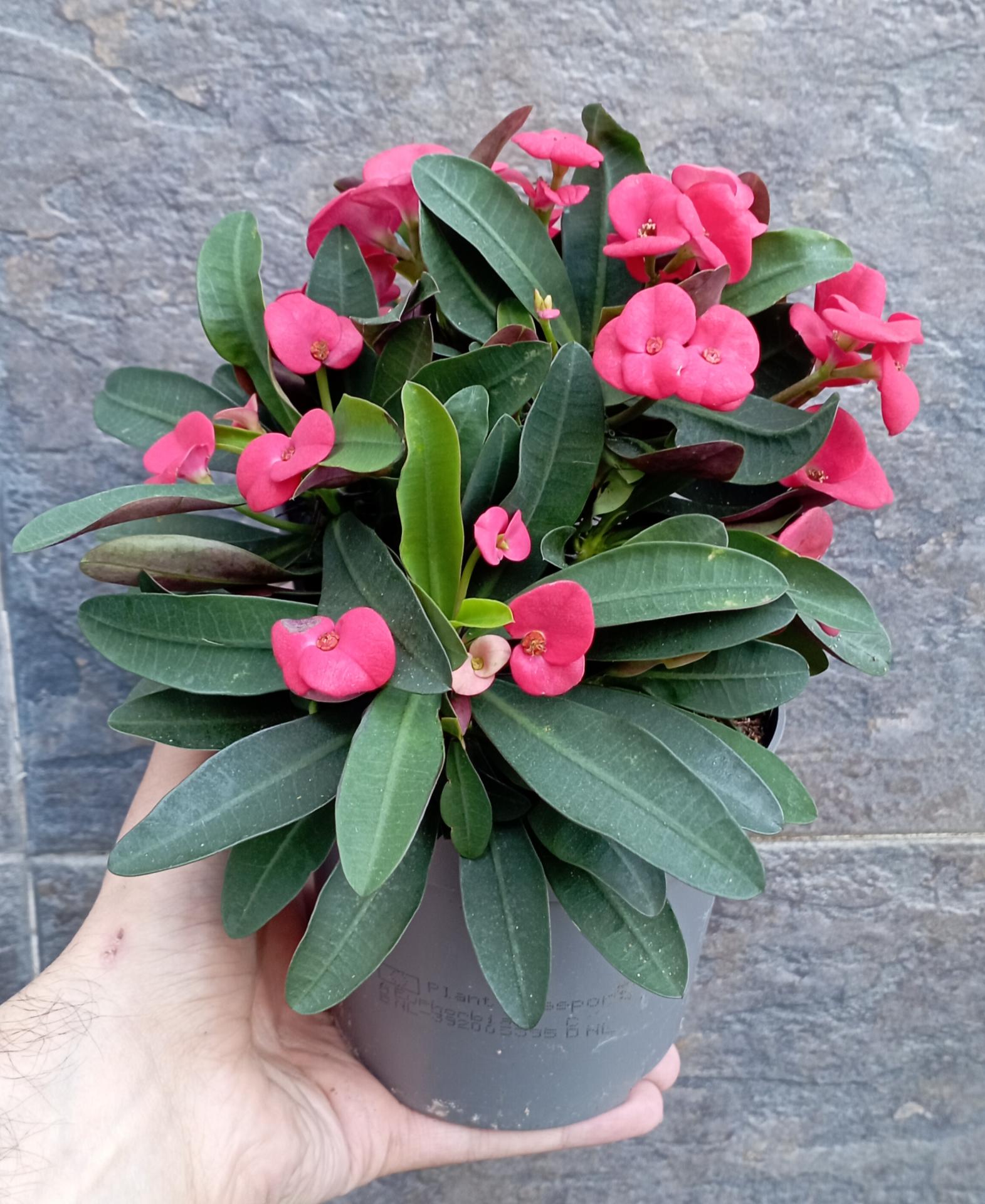 Conocida como la Corona de Cristo, esta planta no solo añade un toque exótico a tu hogar con sus vibrantes flores, sino que también es una guerrera resistente, ideal para aquellos que aman las plantas pero no tanto regarlas. Ven y descubre el encanto espinoso y colorido que hará que tu espacio destaque.