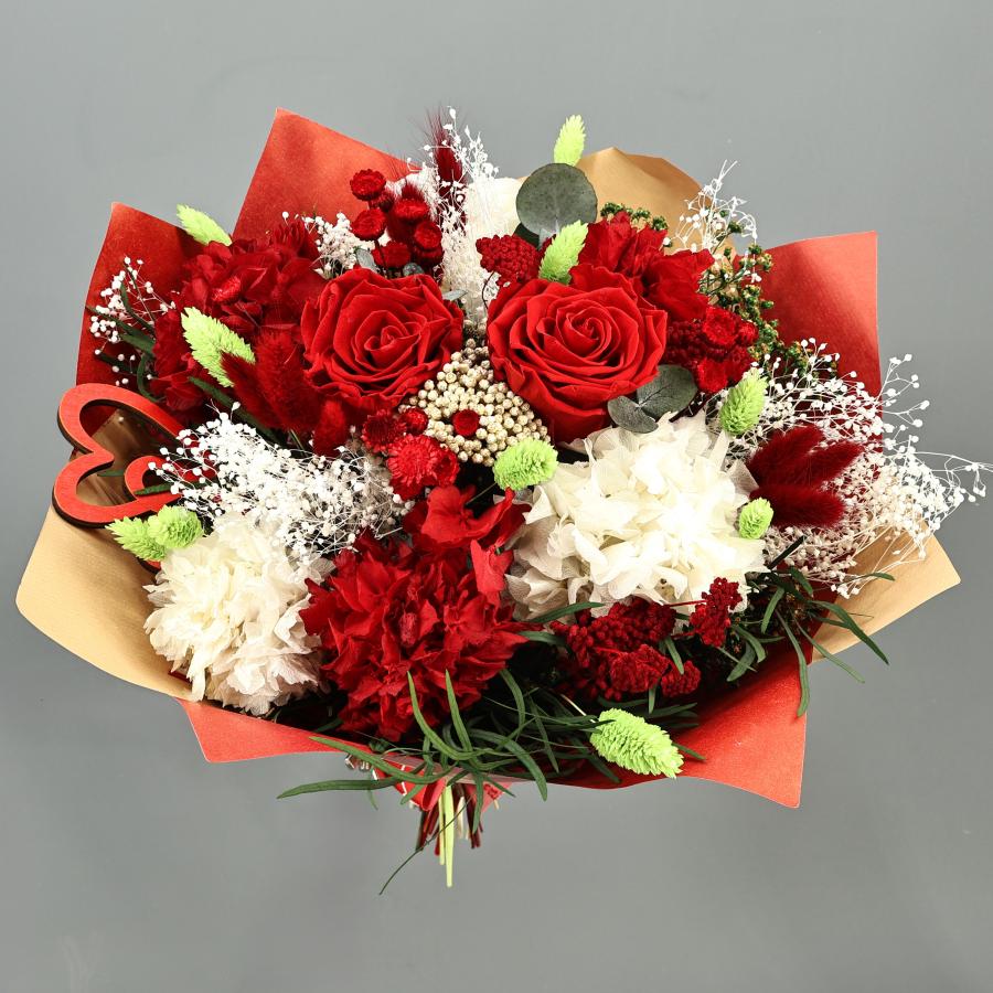 Ramo de flores secas y preservadas en tonos rojos. Detalles que hacen de tu hogar un lugar único. Alta calidad.